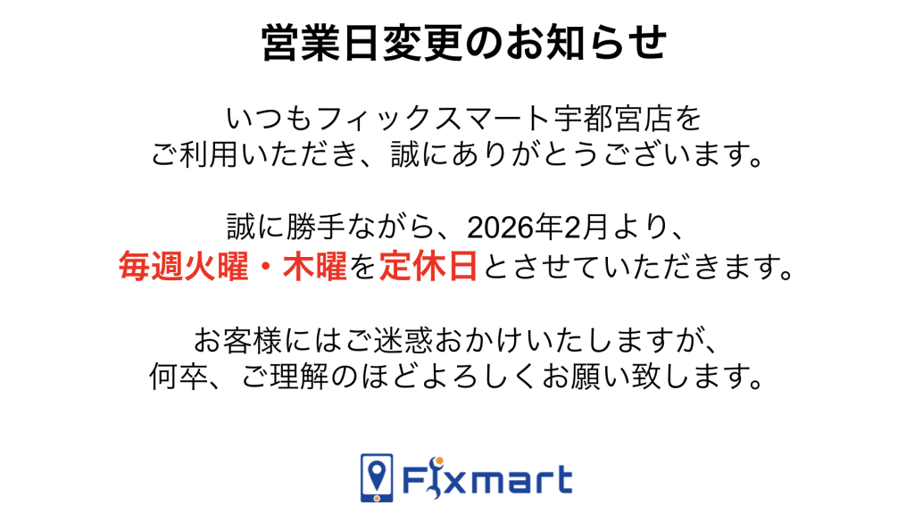 いつもフィックスマート宇都宮店をご利用いただき、誠にありがとうございます。